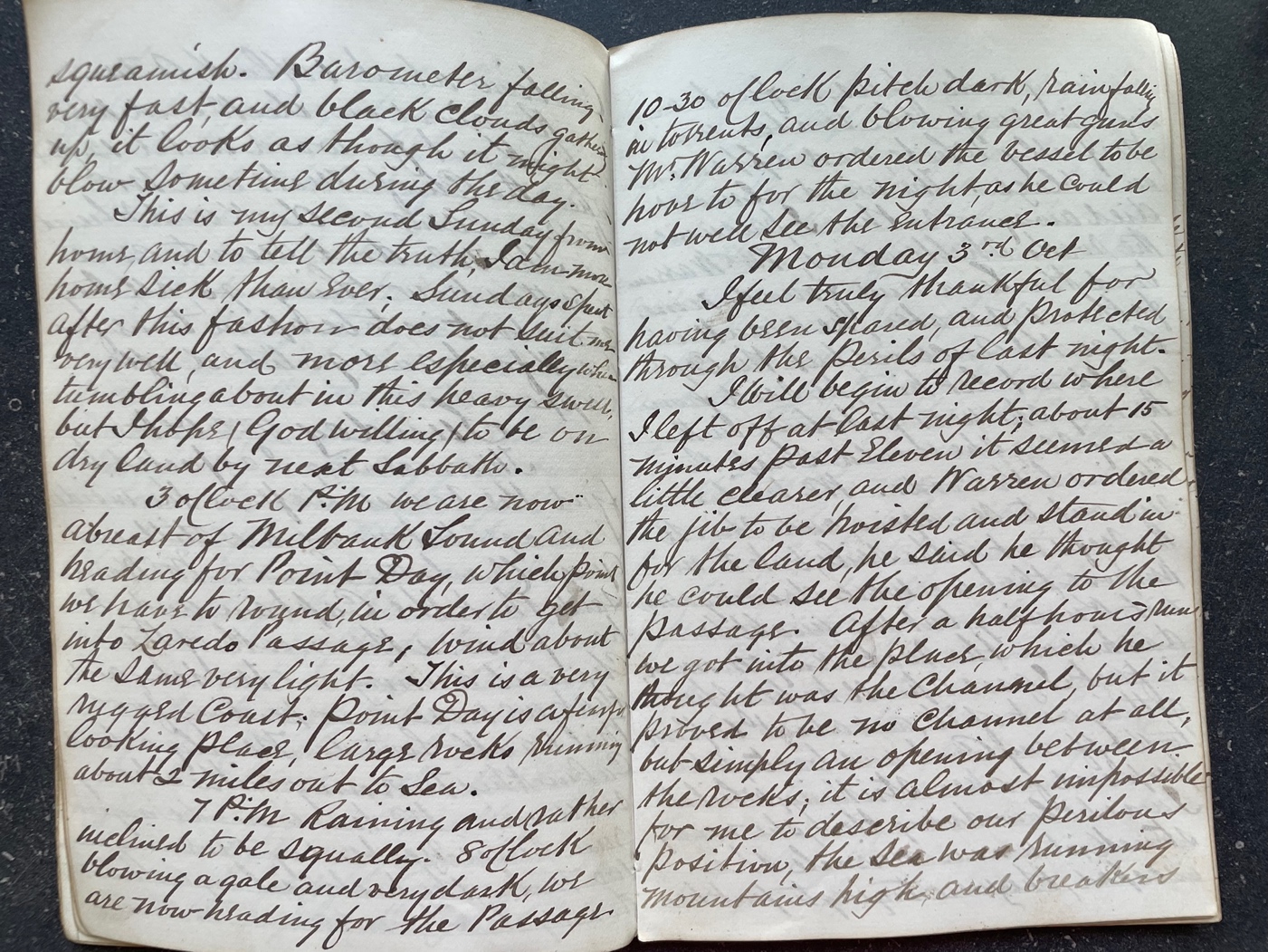 Thomas Russell wrote the diary for his wife Sarah so that she would be able to understand what he had been experiencing during the six months he spent in the Queen Charlottes, away from his family which remained in Victoria.